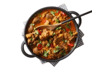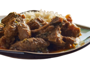Cubes of beef cooked in a medium coconut based gravy with a touch of spice, curry leaves &…